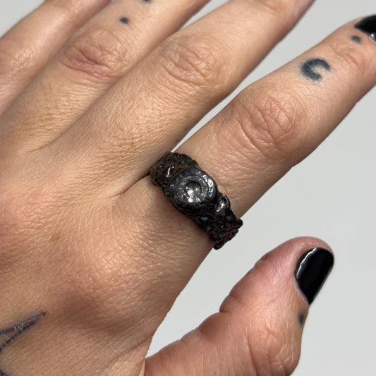 TRIO RING OXIDIZED SILVER WHITE STONES