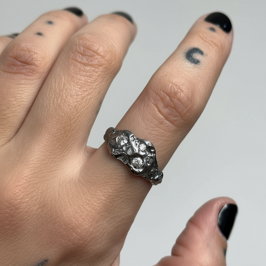 NATURAL SILVER AND OXIDIZED SILVER RING