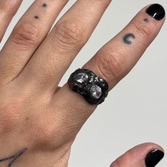 OXIDIZED SILVER AND WHITE STONES TANDEM RING