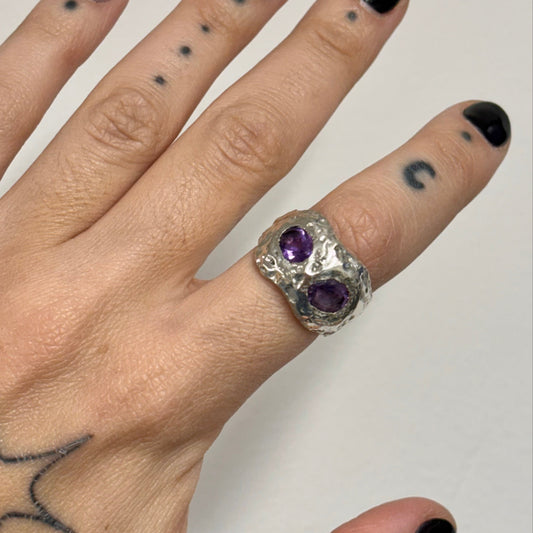 Sold outTANDEM RING IN SILVER AND AMETHYST